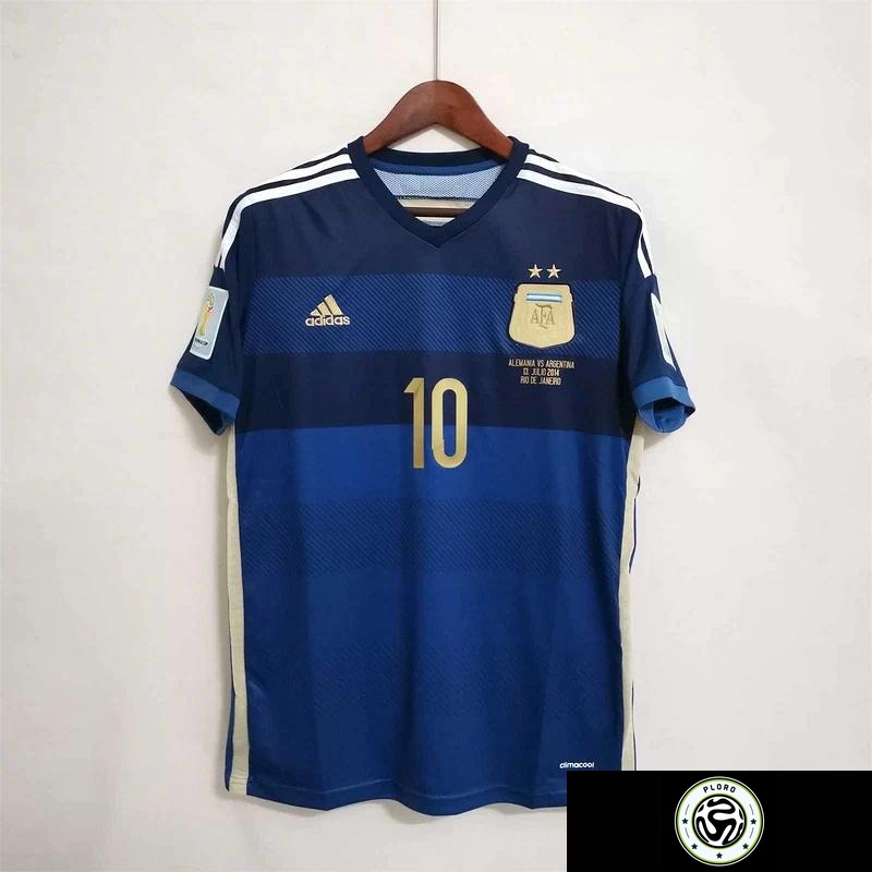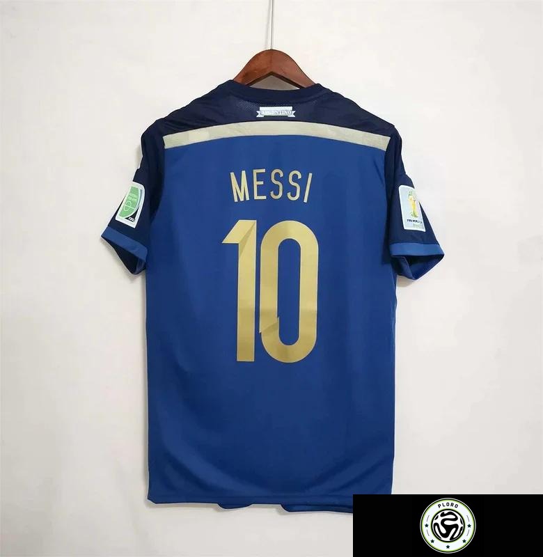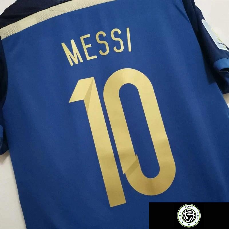 قميص ميسي الاحتياطي لمنتخب الأرجنتين لعام 2014 بتصميم كلاسيكي مع شعار كأس العالم