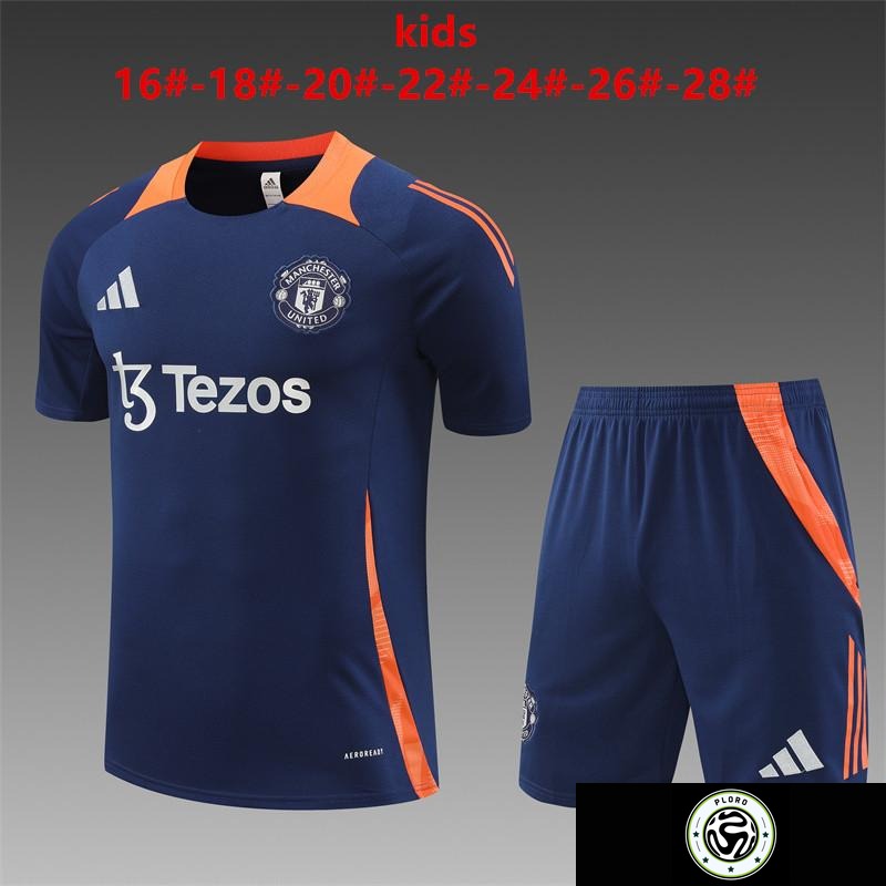 24/25 Kids Manchester United Navy Short Sleeve Jersey+Shorts