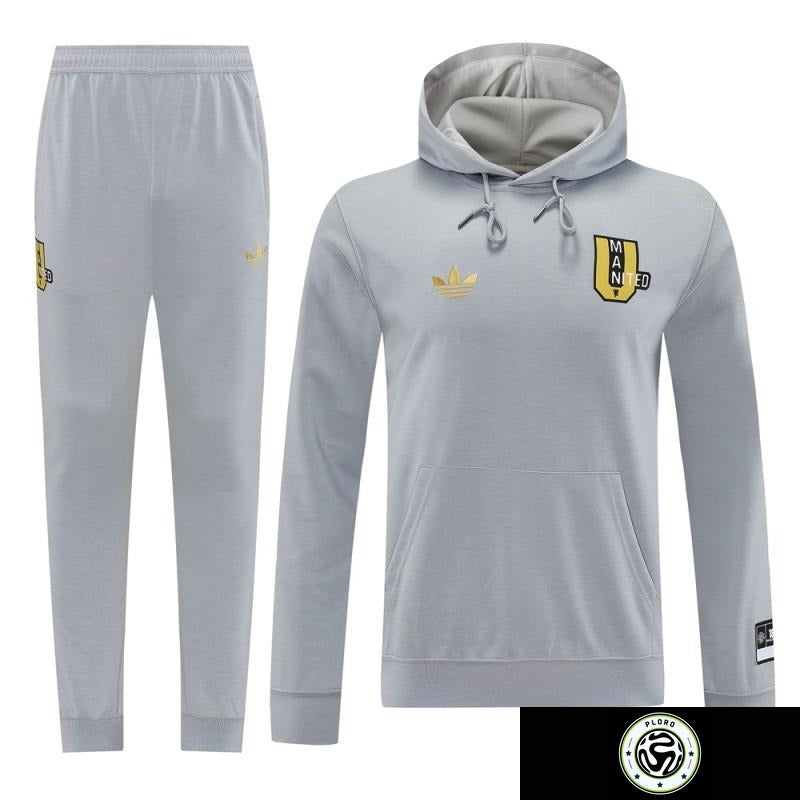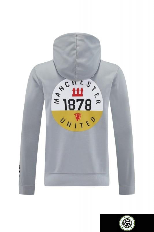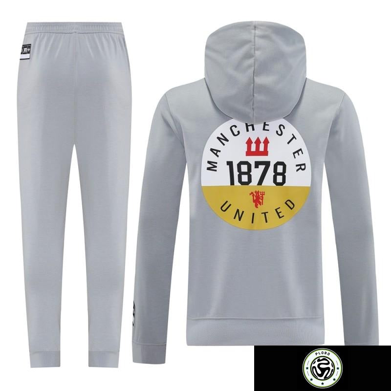 25/26 Manchester United Hooide Grey Full Zipper Jacket + Long Pants